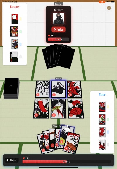 日本文化のひとつである花札を、初心者でも楽しめるようにHPの概念を取り入れたアプリケーションを開発しました。花札は、四季の花や動物が描かれた札を使い、役を作って得点を競う伝統的なカードゲームです。札のデザインには1月から12月までの季節が表現され、日本の美しさを感じられるのが特徴です。しかし近年、遊ぶ人が減り、ルールを知らない世代も増えています。そこで、伝統を守りながら、新しい形で花札の魅力を伝えたいと考えました。このアプリケーションでは、ルールを簡単にアレンジし、誰でも気軽に花札を楽しめるようにしました。花札が表現する日本の美しい季節のデザインを世界中の人々に伝え、未来へと受け継いでいくことを目指しています。