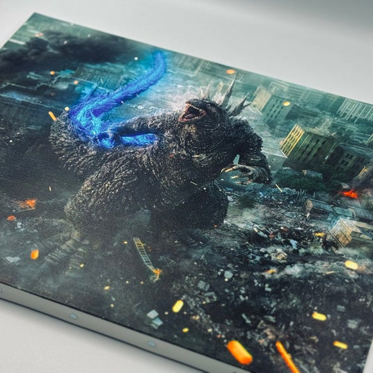 丈夫で長期間美しい状態が保てるキャンバス素材を使用。鮮やかな発色で細部まで緻密に再現され、ゴジラファンにはたまらない価値ある逸品となっています。