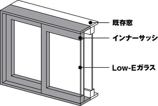 窓にも高い品質を吟味し、既存の窓の内側に複層ガラスの樹脂製インナーサッシを取り付ける「トリプルガラス」を採用しておりますが、より高い断熱性能を発揮するため、インナーサッシはLow-E複層ガラスを採用いたします。