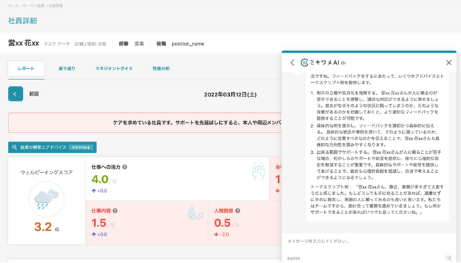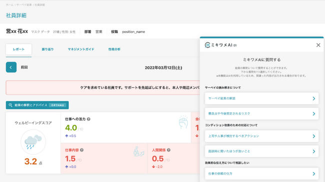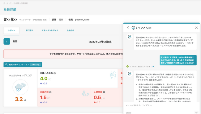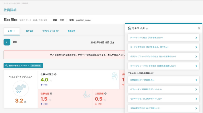 ミキワメAI機能アップデート詳細:個人の性格や心理状態を踏まえたマネジメントのアドバイス機能