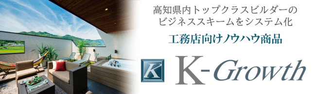 これらに対応するため、当社では、高い受注実績を誇る※高知県の住宅会社「建匠」のビジネススキームをシステム化し、これに各種ツールやサービスを融合させた工務店向けノウハウ商品「K-Growth」を開発、販売することとなりました。