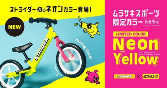 株式会社Ampusが運営するストライダージャパンと株式会社ムラサキスポーツは、ムラサキスポーツ限定カラーのストライダー「NEON YELLOW」を11月15日(金)より、数量限定で販売開始いたします。