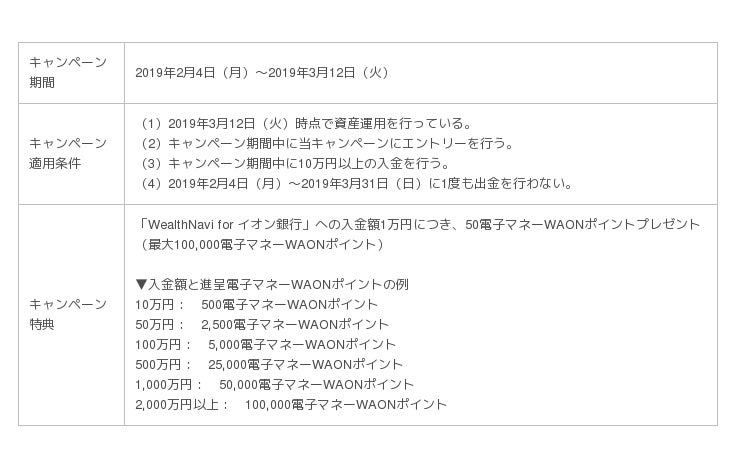 キャンペーンページ:https://www.aeonbank.co.jp/wealthnavi/campaign/190204_01.html