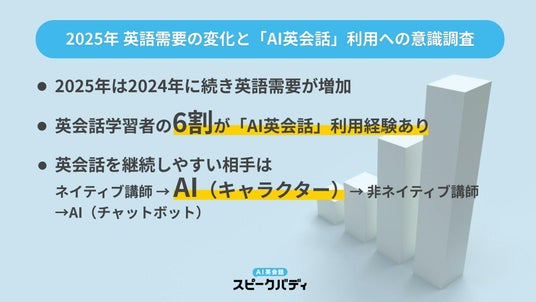 英会話の学習相手として「ネイティブ講師」に続き「AIキャラクター」が選ばれる結果に