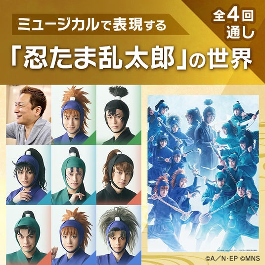 少しお得に楽しめる忍ミュ講座オンライン通しチケット。今年度の4講座とも購入いただいた方の中から抽選で5名様に登壇キャスト全員のサイン入りポスター(14弾初演)をプレゼント!