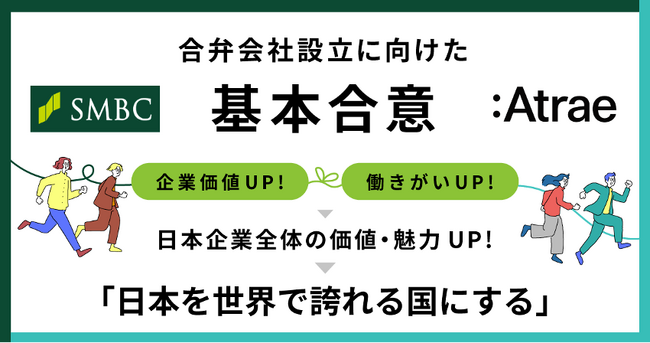 株式会社三井住友フィナンシャルグループ(執行役社長グループCEO:太田 純、以下グループを総称して「SMBCグループ」)と株式会社アトラエ(代表取締役CEO:新居 佳英、以下「アトラエ」)は、企業の組織力や企業価値向上を支援する合弁会社を設立することを目指し、基本合意書(以下「本合意書」)を締結いたしました。