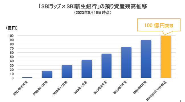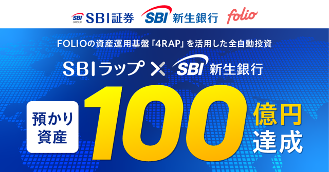 株式会社SBI新生銀行(本社:東京都中央区、代表取締役社長:川島克哉、以下「SBI新生銀行」)、株式会社SBI証券(本社:東京都港区、代表取締役社長:高村正人、以下「SBI証券」)、および株式会社FOLIO(本社:東京都千代田区、代表取締役CEO:甲斐真一郎、以下「FOLIO」)は、投資一任サービス「SBIラップ×SBI新生銀行」の預り資産残高が、2023年5月16日時点で100億円を突破したことをお知らせいたします。