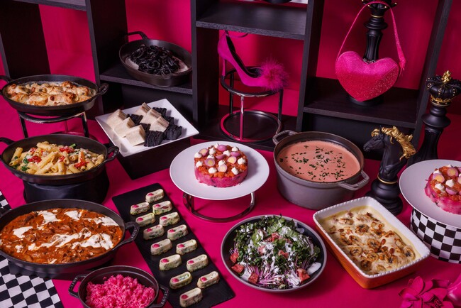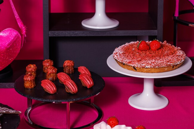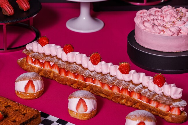 人気のストロベリーシーズン前半の、韓国スイーツをストロベリーと融合させた「All About Korea」ストロベリースイーツビュッフェに続き、後半のテーマは、年々人気を増しているビビッドピンクカラーを取り入れた「CRUSH ON PINK」ストロベリースイーツビュッフェ。「あなたに恋している」という意味の「Crush on you」にインスパイアされて名付けられた今回のスイーツビュッフェでは、鮮やかなピンク色のビュッフェ台と白と黒で統一された空間に、ストロベリースイーツ約20種、セイボリー10種が華やかに並びます。兎年にちなんでアクセントとして取り入れたラビットの装飾やスタイリッシュなチェック柄が創り出す、独特な世界観をお楽しみください。