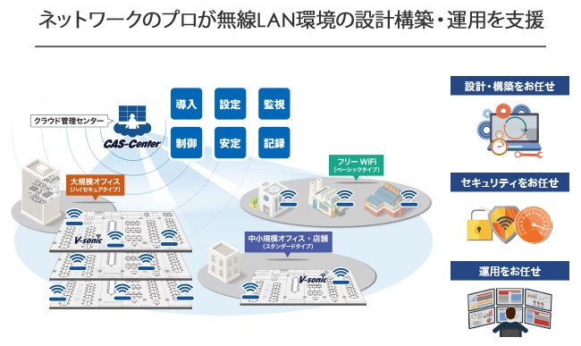 ネットワークのプロがクラウドの管理画面から無線LAN環境の設計構築・運用をするネットワークサービスです。オフィスはもちろん、店舗や学校、病院をはじめ、あらゆる業種に対応。フリーアドレスやWeb会議、教育現場のICT化など、これからの時代に最適な無線LANです。