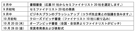 今後は、以下の予定で提出されたビジネスプランについて審査を進めて参ります。