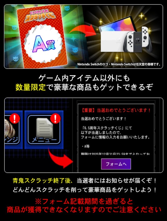 1.豪華商品が当たる!?新機能「青鬼スクラッチ」が登場!