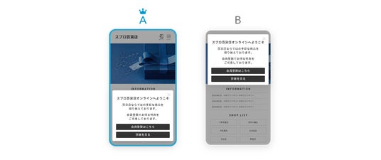 百貨店のサイトの特集ページで会員登録を促す案内を、スマホ画面の上部と下部で表示した場合のA/Bテストを実施しました。上部と下部では、下部に表示したほうが効果が高く、会員登録率に30%以上もの差が出ました。