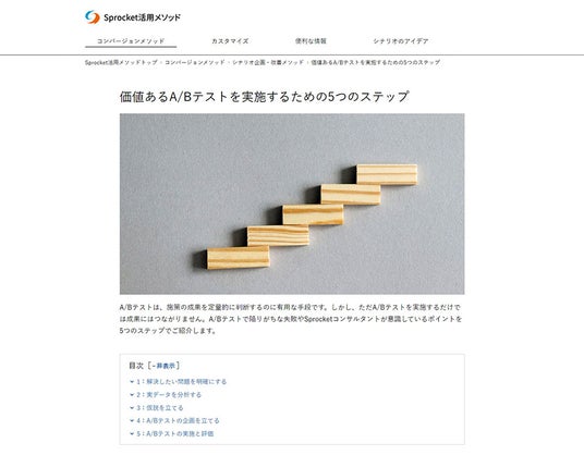 A/Bテストから大きな価値を生み出すためには、基本的なプロセスを正しく理解した上で、PDCAサイクルを回し続ける必要があります。10万回のA/Bテスト実績から成果につながるA/Bテストメソッドを構築しています。Sprocketを活用し、成果を最大化するための実践的なメソッドは、「Sprocket活用メソッド」として導入企業向けに限定公開しています。