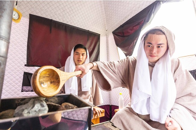 また、テントサウナには世界最熱といわれるMORZHのテントサウナを使用。テントサウナ内は完全なプライベート空間のため、薪やロウリュでお好みの湿度や温度に調整できます。