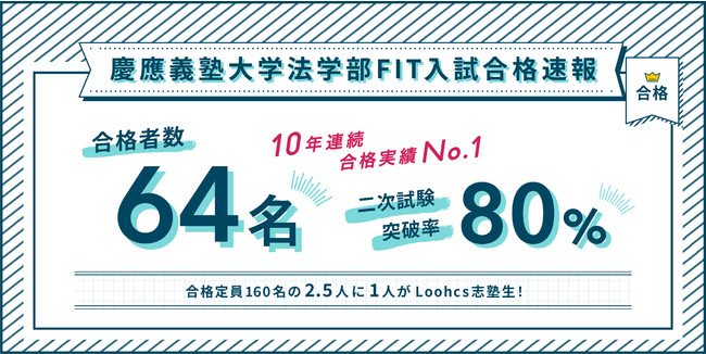 Loohcs株式会社(代表取締役 : 斎木陽平 本社所在地 : 渋谷区代々木)は、同社運営のAO入試専門の学習塾「Loohcs志塾」2022年度の合格実績「慶應義塾大学法学部FIT入試」を発表致します。
