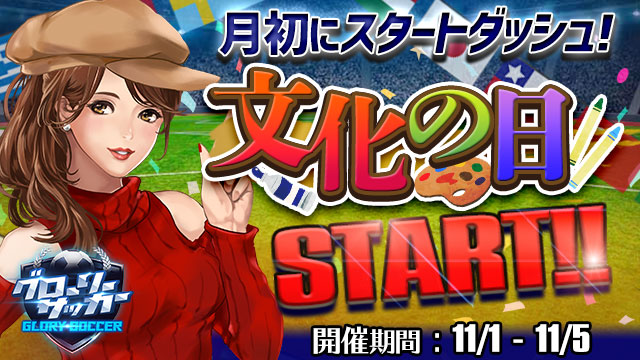ゲームパブリッシャーCTW株式会社は、ゲームサービス「G123.jp」で配信中のHTML5ゲーム『グローリーサッカー』にて、文化の日イベントを開催することをお知らせいたします。