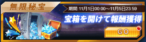 イベント期間中、毎日のログインで宝箱の無料オープン回数を1回獲得できます。また、10回オープンは2割引になります。オープン回数が累計20回に到達すると、累計宝箱を入手可能です。