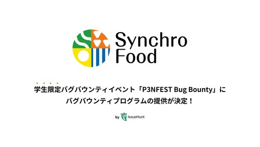 バグバウンティ・プラットフォームやプロダクトセキュリティ支援サービス等を提供するIssueHunt株式会社(本社:東京都中央区日本橋茅場町一丁目8番1号、代表取締役:横溝 一将、HP:https://issuehunt.jp )が開催する、学生向けバグバウンティイベント「P3NFEST Bug Bounty」について、シンクロ・フード様にご提供いただくバグバウンティプログラムが決定しましたので、お知らせいたします。