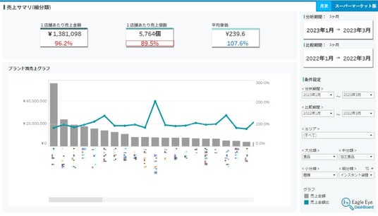 株式会社True Data(本社:東京都港区、代表取締役社長:米倉 裕之、証券コード:4416)は2024年8月1日(木)より、時間をかけずにデータに基づいた意思決定や資料作成を実現可能とする、消費財メーカー向けSaaS型データ分析ツール「Eagle Eye DashBoard(イーグルアイダッシュボード)」の提供を開始します。食品スーパーマーケット版とドラッグストア版の2種類を提供し、食品・飲料、日用品、化粧品、OTC医薬品の統計化した購買データが閲覧可能です。