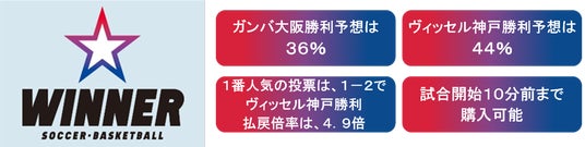なお、「WINNERサッカー1試合予想(ガンバ大阪 vs ヴィッセル神戸)」は、11月23日(土)13時50分まで販売いたします*。国立競技場で開催される天皇杯決勝を「WINNER」と併せてぜひお楽しみください。