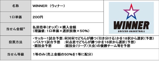 独立行政法人日本スポーツ振興センター(JSC)は、天皇杯 JFA 第104回全日本サッカー選手権大会を対象とした1試合予想くじ「WINNER(ウィナー)」を販売しています。