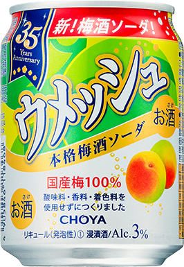 「ウメッシュ本格梅酒ソーダ」は、国産梅を100%使用し、酸味料・香料・着色料無添加で、高品質なのにお求めやすい価格、アルコール分3%でさらに飲みやすく、しっかりと梅の味わいを楽しめる新時代のウメッシュです。爽やかな梅の酸味と程良い甘みにソーダのスッキリ感相まって、お風呂上りや食事との相性が抜群。