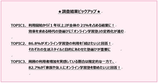 Topic2. 86.8%がオンライン学習塾の利用を「続けたい」と回答!それぞれの生活スタイルと目的にあわせた塾選びが重要に