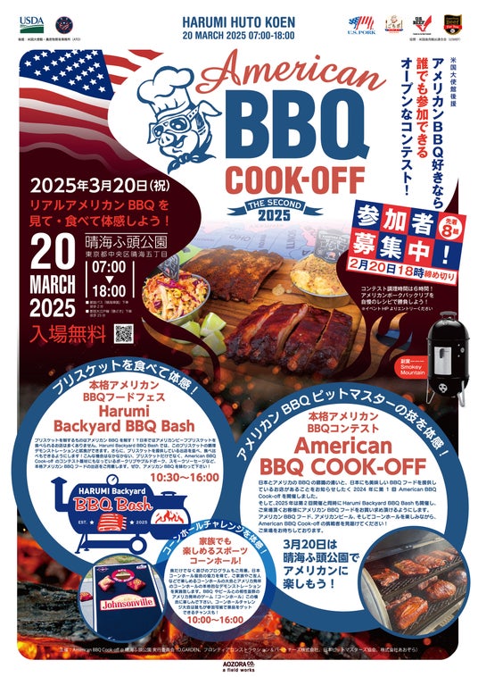 「American BBQ Cook-off @晴海ふ頭公園 2025」は、アメリカのBBQ文化を日本に広めるイベントで、2024年に続く2回目の開催となります。アメリカンBBQを愛する人ならどなたでも参加できるオープンなコンテストです。