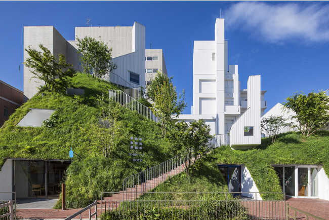 アートデスティネーション「⽩井屋ホテル」は、群馬県前橋市の活性化に貢献することを目的に2020年12月に開業。300年以上の歴史を誇った「⽩井屋旅館」廃業後、70年代の既存建物を建築家の藤本壮介氏が改装、新築をてがけ、国内外のアーティストやデザイナーが協演したことで話題になり、ナショナルジオグラフィックトラベラーの「2021年世界のベストホテル 39」にも選出。アート、建築、デザイン、ウエルビーイング、音楽、そして食において本物を意識し、暮らす人と訪れる人が出会い、五感に刺激を受ける、あらたな文化がめぶく場を提供しています。 ⽚山ひろがシェフを、児島由光がソムリエをつとめるホテルのメインダイニング、世界的美食のガイドブック「ゴ・エ・ミヨ 2023」掲載店の「⽩井屋ザ・レストラン」は自然の恩恵を受けた地元の食材を生かし、郷土料理を再構築した上州キュイジーヌを提案。敷地内には週末のみ営業する隠れ家的な「ザ・バー 真茶亭」もあり、新素材研究所がデザインした空間の中で極上のお酒と最高レベルのカクテルが楽しめます。外気浴とアート空間での内気浴も付随したフィンランドサウナをはじめ、3タイプの完全貸切制のサウナもあり、宿泊客、地元のサウナ愛好家に人気です。 まちなかに面した馬場川通り沿いにはフレッシュフルーツタルトの専門店「ザ・パティスリー」「ザ・ベーカリー」「ブルーボトルコーヒー白井屋カフェ」が軒を並べ、連日さまざまな人が集い、まちなかの界隈として賑わいをみせています。2023年3月には初の書籍 『Shiroiya Hotel Giving Anew』を発刊。