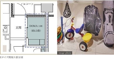 3LDK70平方メートル 超住戸を中心に、南東・南西向き中心、全24タイプの多彩なプランバリエーションをご用意しました。専有部にはキッチン水栓にタッチレス機能を搭載し、バルコニーにも水栓とコンセントを設置することで家事効率性を高めました。また、専有部の収納率は10%超中心であり、その中でも本物件では「玄関収納」にこだわり、皆様のライフスタイルに合わせた収納ができるよう設計いたしました。