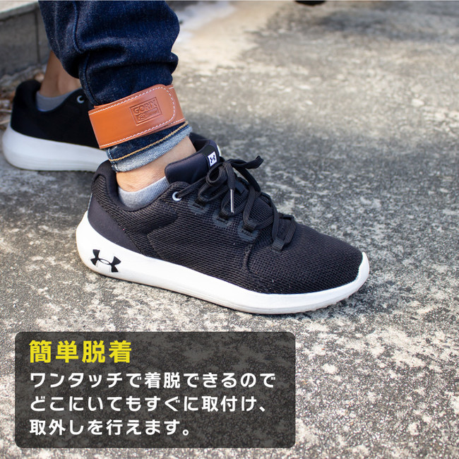 巻き付く力も強く、ワンタッチで足首に装着できます。