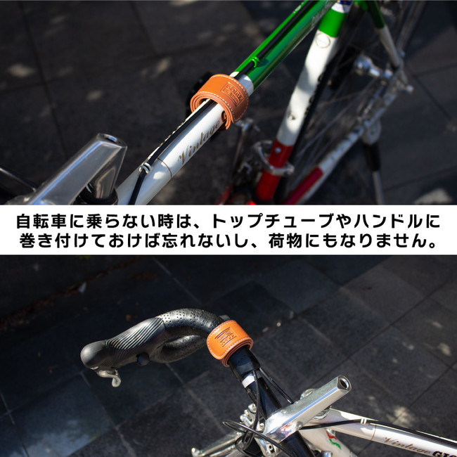自転車に乗らない時は、フレーム(トップチューブ)やハンドルに巻き付けておけば