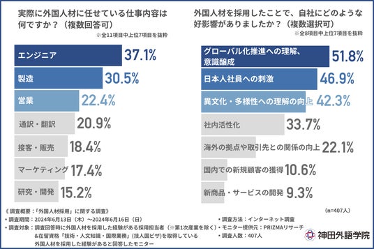 外国人材の採用により自社への好影響を実感している一方で、いくつかの課題も感じている実態が明らかになりました。