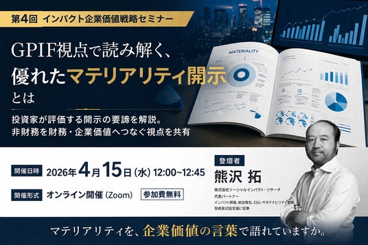 株式会社ソーシャルインパクト・リサーチは、2026年4月15日(水)12:00~12:45に、第4回「インパクト企業価値戦略セミナー」をオンラインで開催いたします。