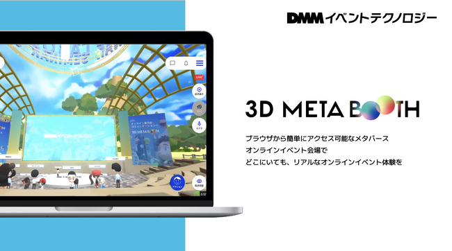 合同会社DMM.com(本社:東京都港区、会長 兼 CEO亀山敬司、https://dmm-corp.com/ 以下、DMM)は、3D空間でイベントを開催できるオンラインイベントプラットフォーム「3D META BOOTH(スリーディーメタブース)」のメタバース機能を2023年5月18日より提供開始いたします。