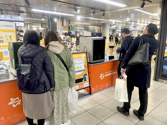 池袋駅前のスペースにて開催した「池袋駅改札前3Dプリンター体験会」の様子