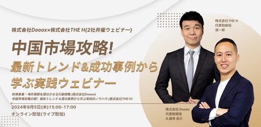 『緊急ではないけれど、重要な課題』について、企業経営者に伴走する“特命社長室(R)︎“を展開する株式会社Dooox(本社:東京都千代田区、代表:久保寺亮介/以下「当社」)は2024年9月5日、中国市場への進出を検討する企業向けに、最新トレンドと実践的ノウハウを提供する無料ウェビナーを株式会社THE H様と共催いたします。新規事業立ち上げのエキスパートと中国市場進出のプロフェッショナルが、成功への具体的な戦略と方法論を伝授。変化の激しい中国市場で勝ち抜くためのビジネスインサイトを得る絶好の機会となっております。