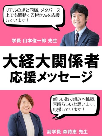 「メタ・マルシェ2023」のメタバース会場には、大阪経済大学OB会「大樟会」会長をはじめとしたOB会メンバーや、高校生の方々から寄せられた応援メッセージを掲載しておりますので、下記にその一部をご紹介させていただきます。