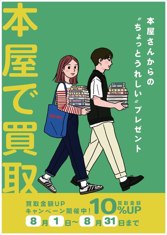 株式会社ブックサプライ(本社:大阪府吹田市、代表:藪田真吾)が提供する買取システムを利用し、株式会社ダイレクト・ショップ(本社:滋賀県彦根市、代表取締役社長:松澤恒雄)が運営する平和書店の計8店舗で、2025年8月1日(金)から2025年8月31日(日)までの期間限定で「買取金額10%UPキャンペーン」を実施いたします。