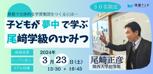 この度、私たちは2024年3月23日に、「子どもが夢中で学ぶ尾崎学級のひみつ~算数で主体的な学習集団をつくるには~」という講座の開催を発表いたします。このイベントは、尾崎先生の学級経営の哲学と実践方法を直接学ぶことができる貴重な機会です。