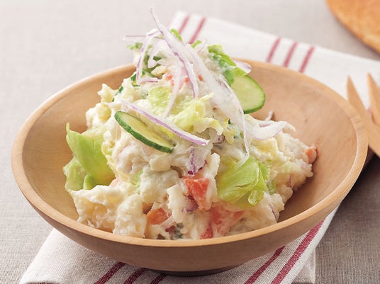 北海道産のじゃがいもに、レタス,きゅうり,オニオンなどを加えて仕上げた定番のポテトサラダです。お子さまから大人まで、ご家族皆さまでお楽しみいただけます。