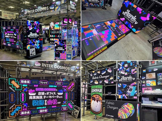 今回のインターコスモスブースは、ポップカルチャーが花開いた80年代のシティポップをイメージした“レトロ×デジタル”空間。