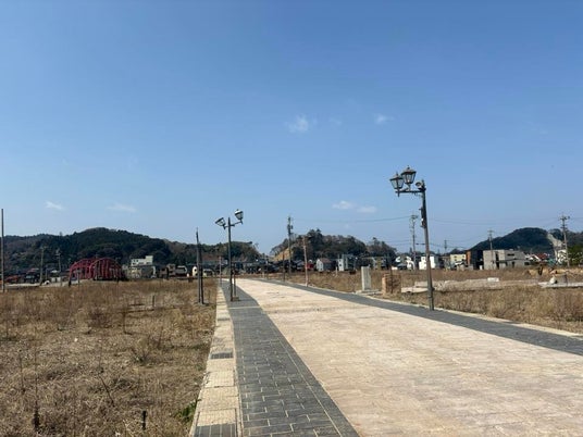 多田さんと別れたあとは、車を輪島市に走らせ朝市の跡地へと向かいました。震災後の火災により一帯は焼失し、現在は更地となっています。電線が焦げた痕跡などが残り、当時の状況の厳しさを感じました。ストリートビューと見比べることで、失われた街並みの大きさと火災の影響を改めて実感しました。折しも我々が訪問した翌週の3月26日から再興に向けた整地工事が開始され、多目的広場や復興住宅が周辺に整備される予定だそうです。