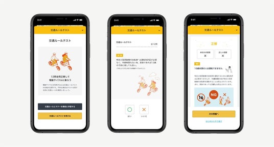 ご利用前の準備として、交通ルールテストの全問正解と16歳以上であることの確認が必要です。いずれも「HELLO CYCLING」アプリから実施いただけます。