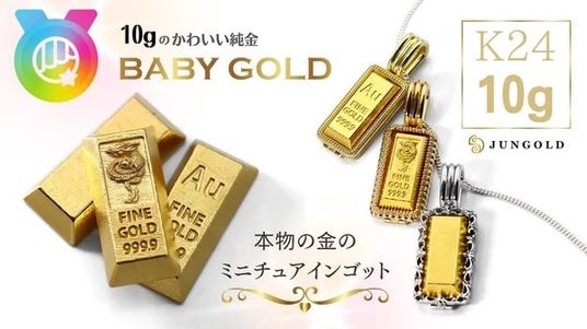 「純金で心躍る体験」をテーマに資産価値のある純金の新しいアイデアに挑戦している株式会社RAIN(本社:東京都台東区雷門、代表:石川 正道)は、「資産価値+心躍る体験」を提供する純金ブランドJUNGOLDから【【いつもの10倍サイズ登場】1gのかわいい純金BABYGOLD。新作は10g!】プロジェクトをMakuakeにて5月23日(木)からスタートしました。248,800円。