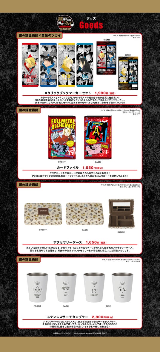 「鋼黄泉カフェ」で販売されるグッズラインナップをご紹介いたします。