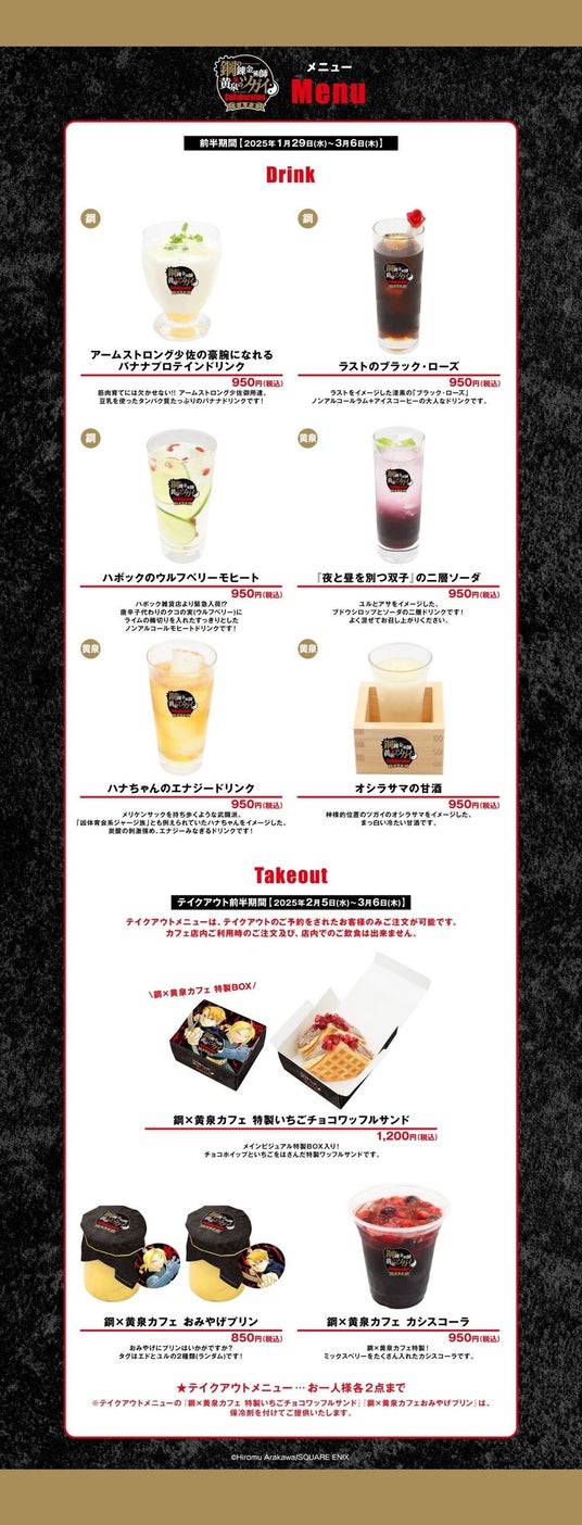 2025/1/29(水)~「鋼の錬金術師×黄泉のツガイ Collaboration CAFE」開催!メニュー・特典・グッズなどコラボカフェ詳細を公開!