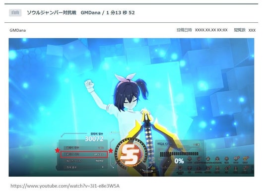 3. タイトルに「ソウルジャンパー対抗戦 〈キャラクターネーム〉 / 〈クリアタイム〉」と記載
