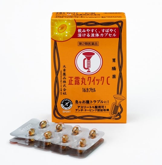 大幸薬品の『正露丸クイックC』は、飲みやすく※1すばやく溶ける※2液体カプセルなので、持ち運びに便利です。主成分の木(もく)クレオソートは自然由来の生薬です。また、5歳のお子様から飲むことができます。木(もく)クレオソートが腸内の水分バランスを調整し、腸の運動を止めることなく正常化するので便秘になりにくいことも特長です。眠くなる成分を含んでいないので、車などの運転操作の前にも服用することができます。また、世界レベルの「アンチ・ドーピング認証」も取得しており、トップアスリートも服用できる品質となっています。通勤・通学時や外出先でおこる急なお腹のトラブルに効果を発揮します。