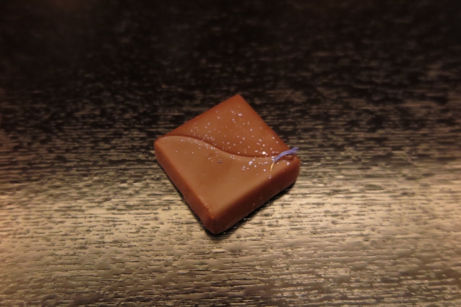 ラベンダーのビターチョコレートガナッシュとソルトのミルクチョコレートガナッシュをビターチョコレートでコーティング